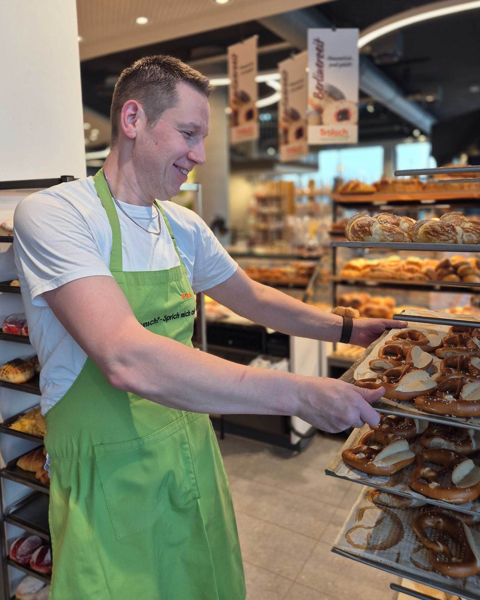 - Du backst Brote, Brötchen und weitere Backwaren in der Filiale frisch auf.